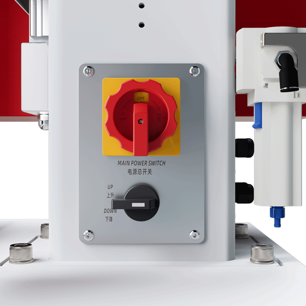 10、立柱右側(cè)設(shè),機(jī)頭升降開(kāi)關(guān),便于調(diào)模對(duì)模,電源開(kāi)關(guān)獨(dú)立控制